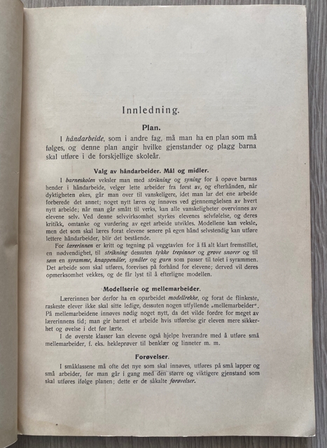 Oppskrifter og illustrasjoner (72 s). Omslaget bærer noe preg av alder og det er påskrift kulepenn på bokens første side, ellers fremstår den i svært flott stand. Håndarbeidsbøker med fotografiske illustrasjoner som i denne var uvanlig. Mål 21,5x15,5 cm.