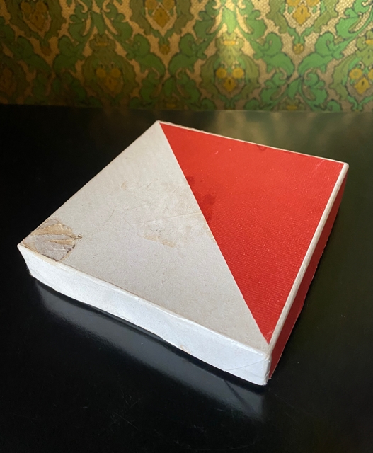4 stk lysestaker til smålys i medfølgende eske. Stakene er i flott vintage stand, mens det er noe aldersrelatert patina/ slitasje på esken. Mål eske 2,5x12,5x12 cm og lysestaker H1,5xØ5,5 cm.