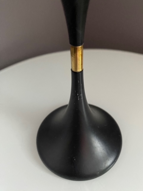 Foruten en liten bulk i lampeskjermen av metall er det ellers ingen skader eller skjemmende bruksmerker, og lampen fremstår i flott vintage stand. Lampen har en E14 lyspæresokkel.