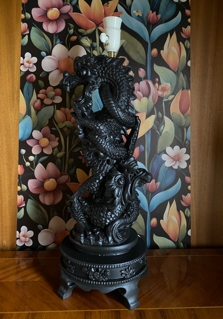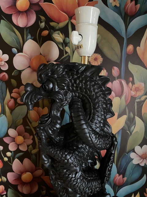 Orientalsk kitsch bordlampe figurlampe drage med skjerm 1970/80-tallet