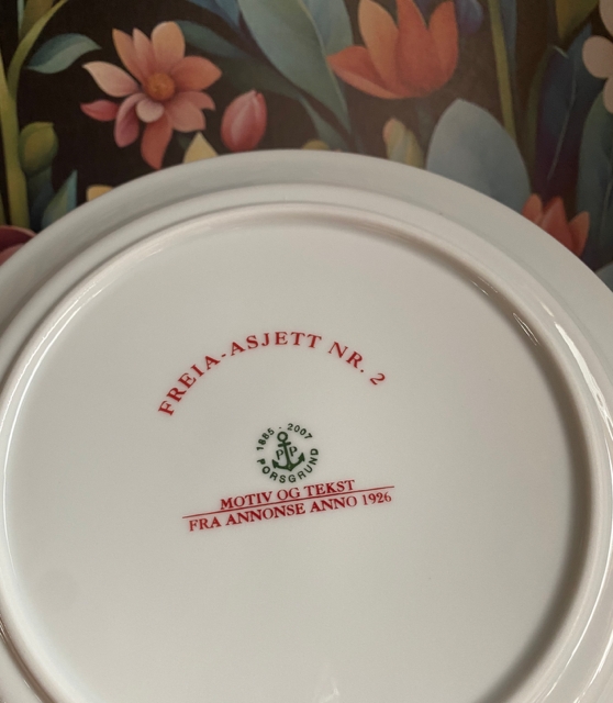 Freia-asjett nr. 2 motiv og tekst fra annonse 1926 reklame samleplett platte skål fat i porselen PP Porsgrund 2007