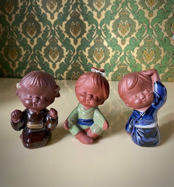 Små barnefigurer i glasert terrakotta/ keramikk Japan 1970/ 80-tallet