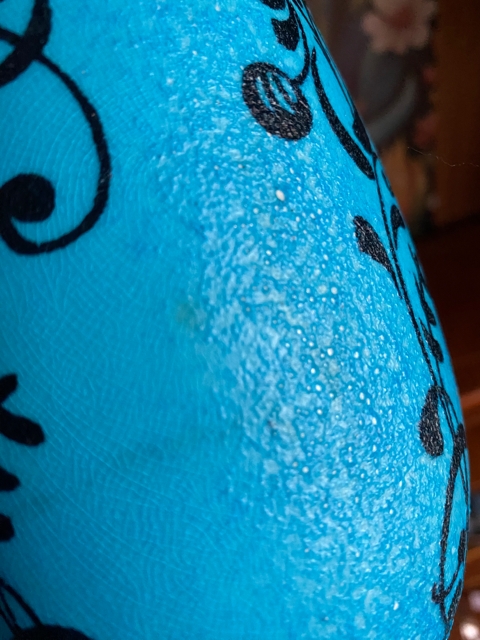 Liten skål i pent brukt stand uten skader eller skjemmende bruksmerker. Krakelering av glasur, hovedsaklig på skålens underside. Mål ca 1,5x 9,5x 4,8 cm.