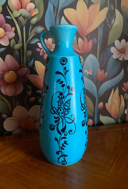 Gul sebra signert kuvertbeger/ skål håndmalt kunstflint - Inger Waage Stavangerflint Norway 1960 tallet