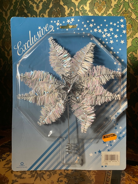 Exclusive ubrukt kitsch toppstjerne juletrepynt i original emballasje Weiste Finland Ekslusiv er gjerne ikke en beskrivelse man ville valgt i dag, men helt klart en herlig kitschy og gøy toppstjerne. Emballasjen er litt preget av alder, men stjernen er i ubrukt stand. NOK125,00 inkl. mva. På lager: 1 stk. Kjøp Ønskeliste Vipps hurtigkasseKjøp nå med Vipps hurtigkasse Del dette Produktinfo Varen kan sendes eller hentes etter avtale på butikklageret i Tysvær NB! man får spørsmål om hente/sending først etter at man har registrert adressen. Fast fraktpris 73 kr for kjøp < 1000 kr og gratis frakt ved kjøp ≥ 1000 kr (Begge alternativene gjelder for forsendelser med vekt 0-10 kg). Har du bestilt, men hører ikke noe i fra meg? Sjekk mappen for spam mail.