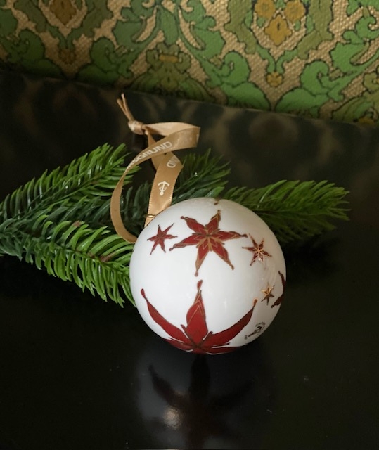 Juletrepynt ornament julekule i hvit porselen julestjerne gulldekor i original eske PP Porsgrund Norway Norge 2011