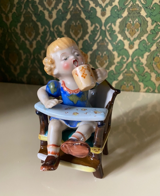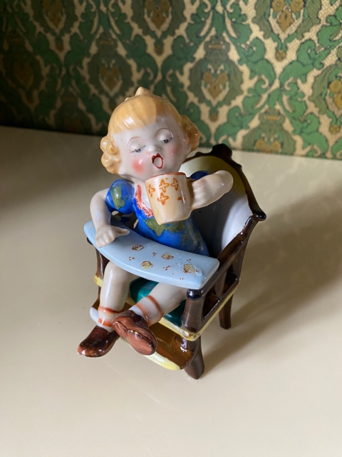 Figuren er 15 cm høy. Det mangler en rød blomst i buketten i pikens hånd og den gjenstående blå har en skade, også blomstene i håret har fått nagg. Skadene påvirker midlertid lite helhetsinntrykket og figuren fremstår ellers å være i pen stand.
