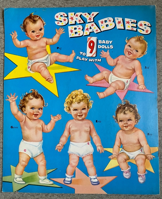 Ubrukt hefte med 3 papirdukker og 6 sider med tilhørende klær. Mål hefte ca 31,5x26,5 cm. Det finnes aldersrelatert slitasje på omslag, men hefte fremstår allikevel i flott vintage stand.