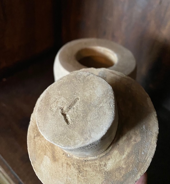 Tidligere eier oppgav at den ble kjøpt i Egypt for 30 år siden og at den er blitt vurdert til å være antikk. Mål ca H22xØ9 cm. Bavian hodet symboliserer Guden Hapi en av Horus` fire sønner. Ingen skader, men det finnes alders relatert patina.