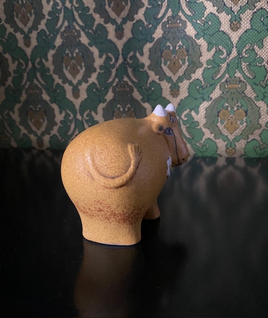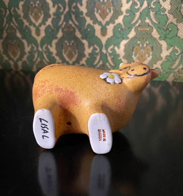 Larson`s ulike kreasjoner er blitt svært ettertraktede samleobjekter både i og utenfor Norge. Lysestaken har et gjenkjennelig barnlig uttrykk og er uten skader eller skjemmende bruksmerker. Høyde ca 27 cm. Fremstår i flott vintage stand.