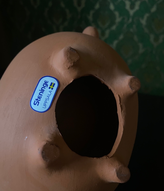 Larson`s ulike kreasjoner er blitt svært ettertraktede samleobjekter både i og utenfor Norge. Lysestaken har et gjenkjennelig barnlig uttrykk og er uten skader eller skjemmende bruksmerker. Høyde ca 27 cm. Fremstår i flott vintage stand.