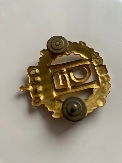 Luemerke i patinert metall. Stemplet med Aksel Holmsen Oslo. Ingen skader eller skjemmende bruksmerker, men det kan observeres noe slitasje og patina. Ikke forsøkt rengjort. Mål ca 3,9x4,7 cm.