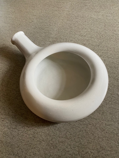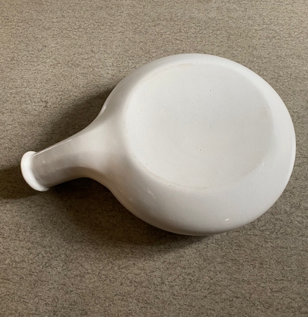 "Robust"/ kraftig pussbekken i polert stål og hadde man ikke visst bedre så kunne man ha latt seg overbevise om at det er en "designer" skål" ( ikke designet for puss). Mål ca H4x L25xB16 cm. Ingen skader, men det finnes patina/ bruksmerker.
