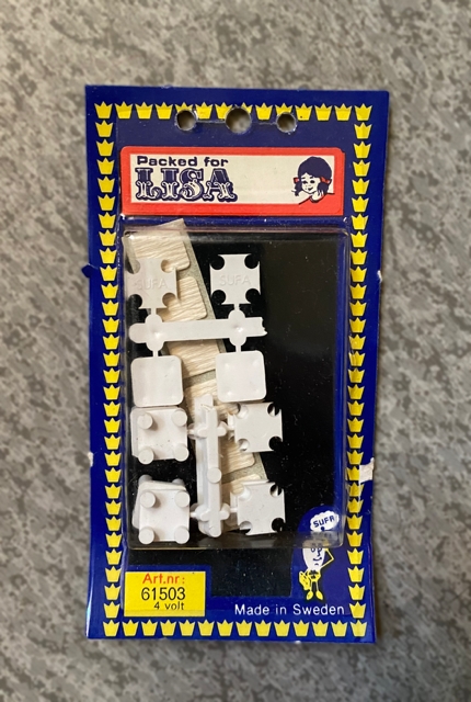 LISA dukkehus elektrisk tilbehør i uåpnet emballasje art.nr 61503 4 volt Sweden Alder ukjent, men antas å være fra 1980-tallet. NOK65,00 inkl. mva. På lager: 8 stk. Kjøp Ønskeliste Del dette Produktinfo Varen kan sendes eller hentes etter avtale på butikklageret i Tysvær NB! man får spørsmål om hente/sending først etter at man har registrert adressen. Fast fraktpris 73 kr for kjøp <1000 kr og gratis frakt ved kjøp ≥1000 kr (Begge alternativene gjelder for forsendelser med vekt 0-10 kg). Har du bestilt, men hører ikke noe i fra meg? Sjekk mappen for uønsket e-post.
