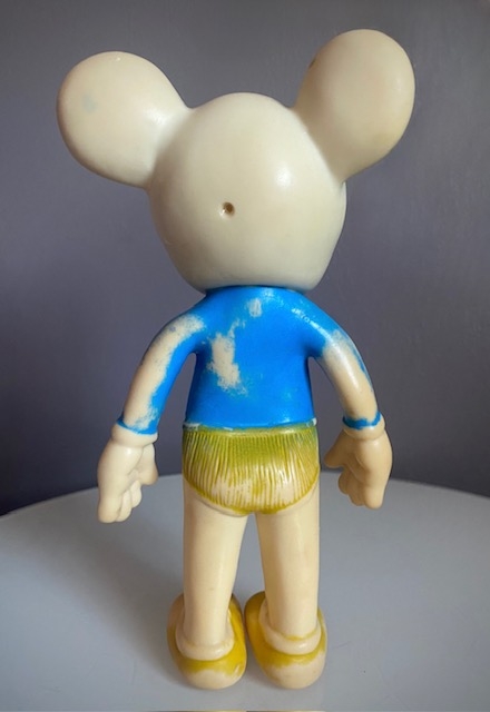 "Minni Mus", gummifigur - Lærdal Stavanger Norge 1957 Minni Mus figur i mykplast produsert ved Tomte småvareindustri. Modellen 741-Minnie Mouse er fra 1957. Mål H19,5x L10x B8 cm. Figuren har ingen skader, men som man ser av bildene er det stor slitasje på den opprinnelige fargen. Betyr lite, flott uansett NOK1 150,00 inkl. mva. På lager: 1 stk. Kjøp Ønskeliste Vipps hurtigkasseKjøp nå med Vipps hurtigkasse Del dette Produktinfo http://tomte-toys.com https://www.stavangermuseum.no/events/det-var-en-gang-en-tresko