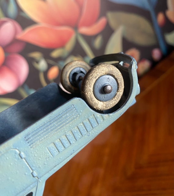 Jumbo Sedan 1018 støpt metall die-cast hvite gummihjul Tootsietoy America USA 1930-tallet Foruten aldersrelatert patina er bilen i flott stand, blant annet er alle de 4 gummihjulene inntakt. Mål ca H4xL15xB4 cm NOK395,00 inkl. mva. På lager: 1 stk. Kjøp Ønskeliste Vipps hurtigkasseKjøp nå med Vipps hurtigkasse Del dette Produktinfo https://en.wikipedia.org/wiki/TootsieToy Varen kan sendes eller hentes etter avtale på butikklageret i Tysvær NB! man får spørsmål om hente/sending først etter at man har registrert adressen. Fast fraktpris 73 kr for kjøp <1000 kr og gratis frakt ved kjøp ≥1000 kr (Begge alternativene gjelder for forsendelser med vekt 0-10 kg). Har du bestilt, men hører ikke noe i fra meg? Sjekk mappen for uønsket e-post.