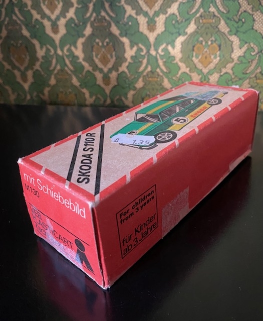 SKODA S 110R Rød modellbil plast lekebil i original emballasje DDR Germany Øst-Tyskland 1970-tallet. Pent brukt/ ubrukt lekebil. Bilen er i flott vintage stand, mens esken har en del aldersrelatert slitasje. Lengde bil ca 13,5 cm. Faktisk alder ikke bekreftet. NOK375,00 inkl. mva. På lager: 1 stk. Kjøp Ønskeliste Vipps hurtigkasseKjøp nå med Vipps hurtigkasse Del dette Produktinfo Varen kan sendes eller hentes etter avtale på butikklageret i Tysvær NB! man får spørsmål om hente/sending først etter at man har registrert adressen. Fast fraktpris 73 kr for kjøp <1000 kr og gratis frakt ved kjøp ≥1000 kr (Begge alternativene gjelder for forsendelser med vekt 0-10 kg). Har du bestilt, men hører ikke noe i fra meg? Sjekk mappen for uønsket e-post.