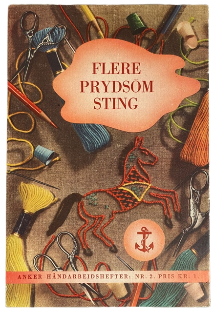 5 papirhefter med ca 10 s hver med artige og fargerike mønster, ulike typer sting og fremgangsmåte. Faktisk årgang ukjent, men de er merket "Printed in Great Britain", noe som skulle tilsi at de er fra etterkrigstiden. Løse i perm ellers i flott stand.