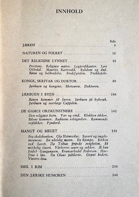 Humor fra hav til hei - Theodor Dahl, Stabenfeldt Stavanger 1944 En 254 siders bok om Jærsk humor og lynne med tegninger av Henry Imsland. Mål ca 2,5x16x21,5 cm. Mykt omslag. Godt brukt og litt "rufsete" bok. NOK77,00 inkl. mva. På lager: 1 stk. Kjøp Ønskeliste Del dette