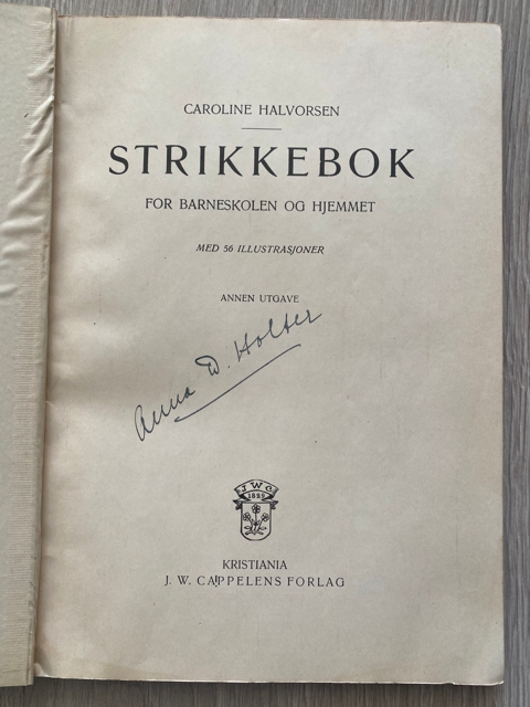 "Lærebok for husmorskolene i Norge og en verdifull bok for husmødre". Boken har 555 sider fylt med fakta, veiledning og illustrasjoner av alt mellom himmel og jord (en husmor må kunne mestre det meste. ) Slitt omslag, sider med påskrift. Mål 23x16 cm.