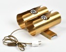 Dobbel lampett i formet messingoksidert aluminium. Etikettmerket "Bison" og har E14 lyspæresokler. Mål H22x B32 cm. Lyspærer med speiltopp følger med. Lampen er i veldig flott vintage stand, uten skader og minimalt med bruksmerker.