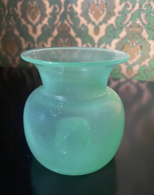 Elegant brutalisme. Tung og "robust" vase med elegant sliping. Mangler signatur. Mål ca H17x Ø7,5 cm. Ingen skader, men det finnes tegn etter bruk på undersiden av vasen. Fremstår i flott vintage stand.