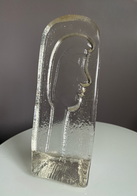 Relieff kunstglass figur skulptur- Heidi Kristiansen Norge Relieff av menneskeskikkelse utført i transparent kunstglass. Merket under med HK. (Heidi Kristiansen, Henningsvær). 24 cm høy og i pen stand NOK380,00 inkl. mva. På lager: 1 stk. Kjøp Ønskeliste Vipps hurtigkasseKjøp nå med Vipps hurtigkasse Del dette