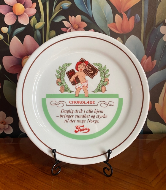 Freia-asjett nr. 2 motiv og tekst fra annonse 1926 reklame samleplett platte skål fat i porselen PP Porsgrund 2007