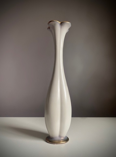 Høyhalset vase i keramikk med gullkant - AWF Arnold Wiigs Fabrikker Halden Norge 1950/60 tallet