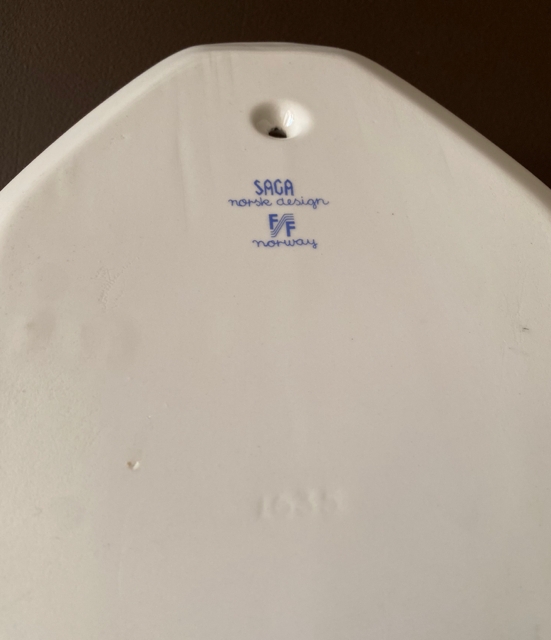 SAGA stor veggplatte/veggplett i porselen 1635 Turi-design Turi Gramstad Oliver FF Figgjo Flint Norway 1960/70-tallet