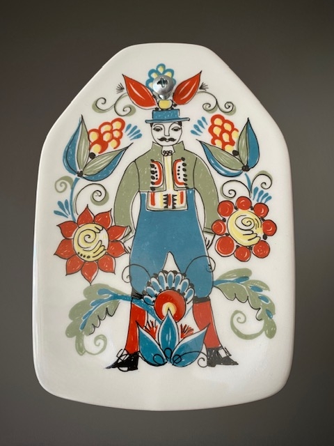 Porselensplett uten skader eller skjemmende bruksmerker. Mål ca 15,5x10,5 cm. Folklore og Saga-seriene skulle tjene til suvenirer og ha et norsk preg.