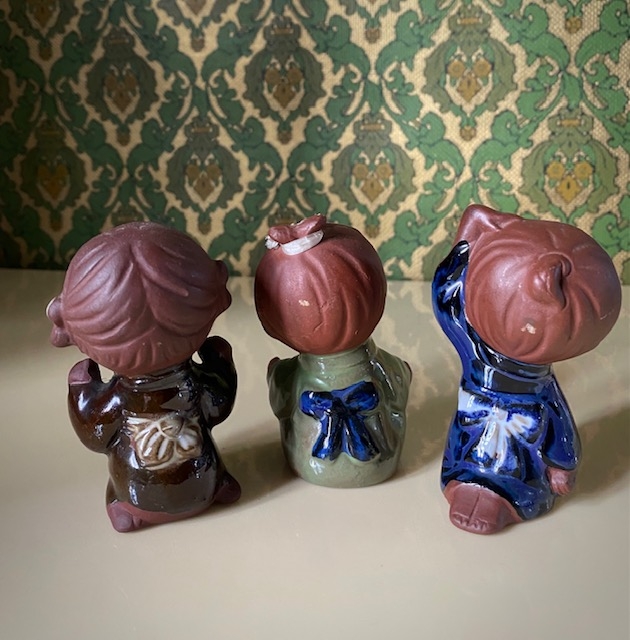 Små barnefigurer i glasert terrakotta/ keramikk Japan 1970/ 80-tallet