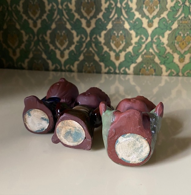 3 stk figurer selges samlet. Ingen skader eller skjemmende bruksmerker, men det finnes aldersrelatert patina. Høyde ca 8 cm