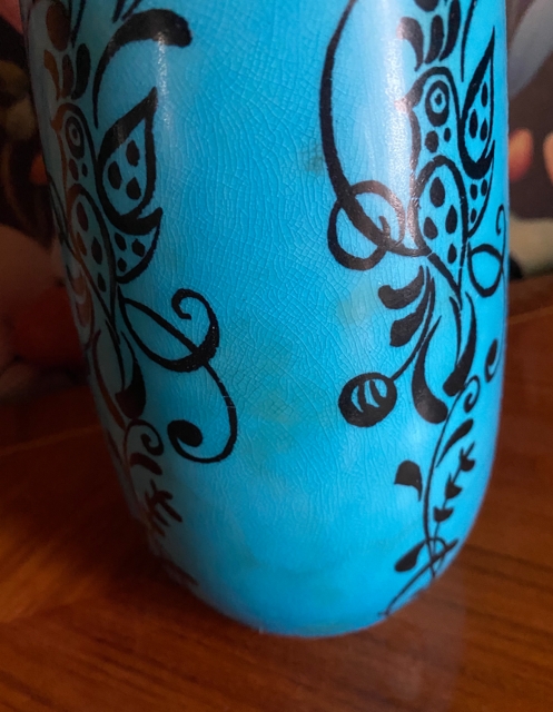 Gul sebra signert kuvertbeger/ skål håndmalt kunstflint - Inger Waage Stavangerflint Norway 1960 tallet