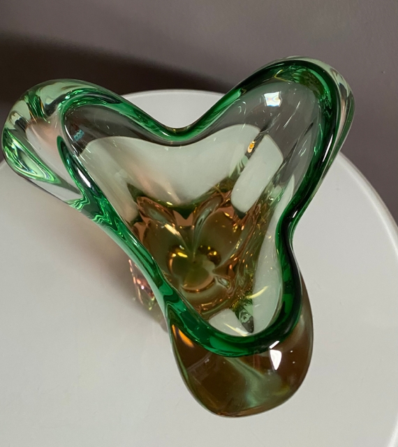 Bohemian Peach delite vase i kunstglass - Tsjekkia 1960/ 70 tallet Bohemian vase i kunstglass med de lekreste farger. H21x Ø14 cm. I flott vintage stand NOK200,00 inkl. mva. Utsolgt Ønskeliste Del dette