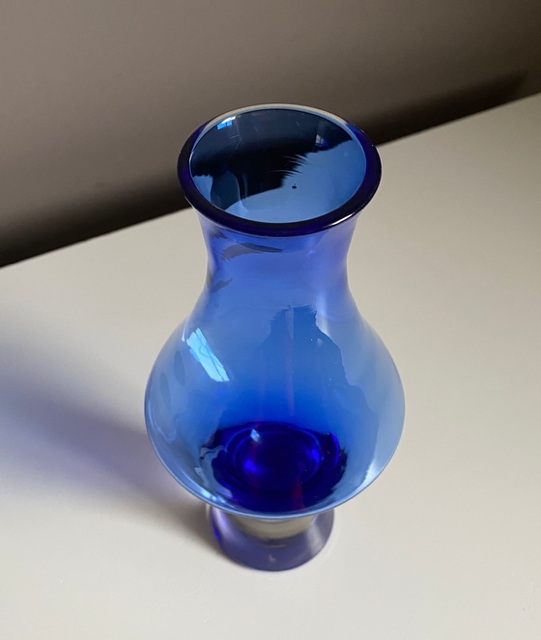 Vase i blått/ transparent kunstglass - Magnor Glassverk Norge, 1960 tallet Denne vasen nette og lekre vasen er antagelig en av Magnor sine mange kunstverk i glass. Vasen er helt og pen, 20 cm høy og har en diameter på ca 9 cm. NOK127,00 inkl. mva. På lager: 1 stk. Kjøp Ønskeliste Vipps hurtigkasseKjøp nå med Vipps hurtigkasse Del dette