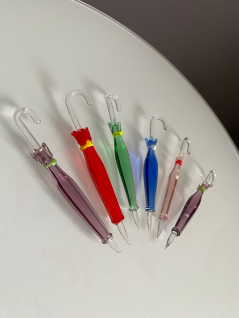 Det er vel gjerne bare gamlinger som vet hva en paraply drink er ( sånn drink man pleide å drikke i "Syden" back in the days). Uansett her har du 6 håndlagede Cocktail sticks/pinner i kunstglass. Dekorative ja, men praktiske?..nope. Lengde 8,5 cm.