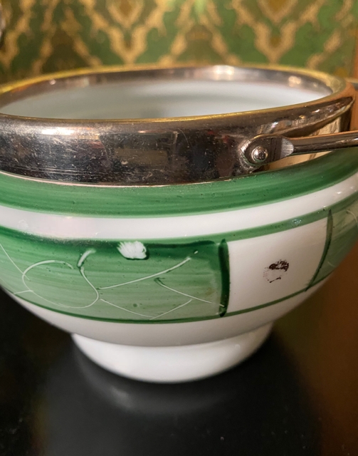 Pent brukt tidløs design lampe. Litt aldersrelatert patina på messingen. Glasskuplene er tilsynelatende perfekte, men ved ettersyn kan det observeres noen små nag langs kanten. Ingen av delene er på noe vis skjemmende. Mål H15x L20x B23 cm. 2xE14 lyspærer