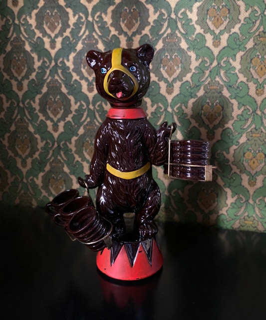 Mangler spilledåsen som har vært montert i bunn av flasken, samt at det er et skår i glasset kanten på korken. Ingen av delene påvirker utseende eller funksjonalitet. Ellers er flasken i flott vintage stand. Mål ca H23x Ø12,5 cm.