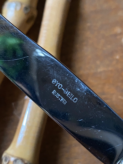 Flotte og pent brukte kniver med blad i stainless steel oppbevart i noe slitt original eske. Kniver L20 cm og mål eske H2,5x L22x B12,5 cm.