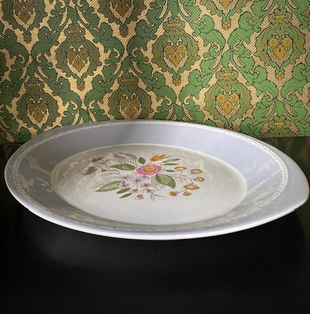 Grå Benta serveringsfat med hvit relieff bord og Helene blomstermotiv Figgjo Flint Norway Norge 1950/60-tallet