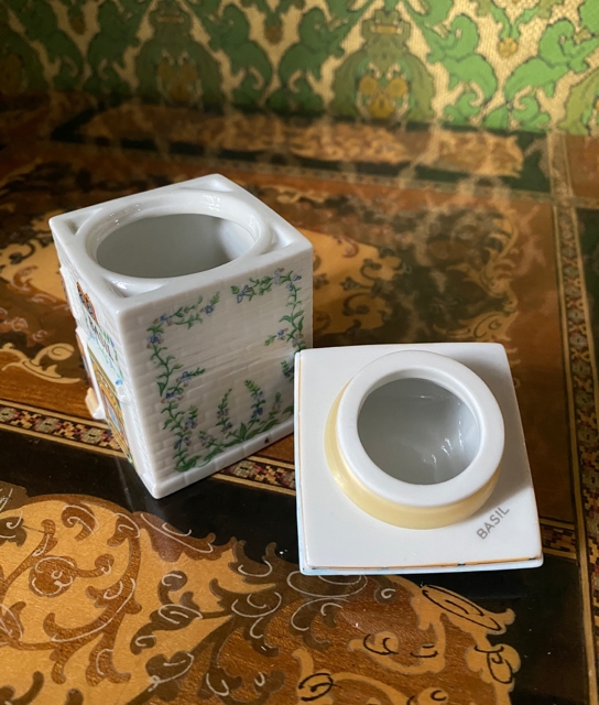 Lenox Spice Village Basil basilikum krydderbøsse krydderkrukke Brooks & Bentley 1989 Krydderkrukke i flott vintage stand. Eksklusivt samleobjekt. NOK145,00 inkl. mva. På lager: 1 stk. Kjøp Ønskeliste Vipps hurtigkasseKjøp nå med Vipps hurtigkasse Del dette Produktinfo Varen kan sendes eller hentes etter avtale på butikklageret i Tysvær NB! man får spørsmål om hente/sending først etter at man har registrert adressen. Fast fraktpris 73 kr for kjøp <1000 kr og gratis frakt ved kjøp ≥1000 kr (Begge alternativene gjelder for forsendelser med vekt 0-10 kg). Har du bestilt, men hører ikke noe i fra meg? Sjekk mappen for uønsket e-post.