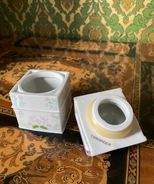 Lenox Spice Village Coriander Koriander krydderbøsse krydderkrukke Brooks & Bentley 1989 Krydderkrukke i flott vintage stand. Eksklusivt samleobjekt. NOK145,00 inkl. mva. På lager: 1 stk. Kjøp Ønskeliste Vipps hurtigkasseKjøp nå med Vipps hurtigkasse Del dette Produktinfo Varen kan sendes eller hentes etter avtale på butikklageret i Tysvær NB! man får spørsmål om hente/sending først etter at man har registrert adressen. Fast fraktpris 73 kr for kjøp <1000 kr og gratis frakt ved kjøp ≥1000 kr (Begge alternativene gjelder for forsendelser med vekt 0-10 kg). Har du bestilt, men hører ikke noe i fra meg? Sjekk mappen for uønsket e-post.