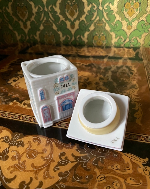 Lenox Spice Village Dill krydderbøsse krydderkrukke Brooks & Bentley 1989 Krydderkrukke i flott vintage stand. Eksklusivt samleobjekt. NOK145,00 inkl. mva. På lager: 1 stk. Kjøp Ønskeliste Vipps hurtigkasseKjøp nå med Vipps hurtigkasse Del dette Produktinfo Varen kan sendes eller hentes etter avtale på butikklageret i Tysvær NB! man får spørsmål om hente/sending først etter at man har registrert adressen. Fast fraktpris 73 kr for kjøp <1000 kr og gratis frakt ved kjøp ≥1000 kr (Begge alternativene gjelder for forsendelser med vekt 0-10 kg). Har du bestilt, men hører ikke noe i fra meg? Sjekk mappen for uønsket e-post.