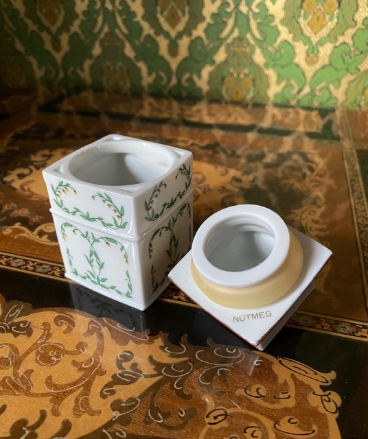 Lenox Spice Village Nutmeg muskatnøtt krydderbøsse krydderkrukke Brooks & Bentley 1989 Krydderkrukke i flott vintage stand. Eksklusivt samleobjekt. NOK145,00 inkl. mva. På lager: 1 stk. Kjøp Ønskeliste Vipps hurtigkasseKjøp nå med Vipps hurtigkasse Del dette Produktinfo Varen kan sendes eller hentes etter avtale på butikklageret i Tysvær NB! man får spørsmål om hente/sending først etter at man har registrert adressen. Fast fraktpris 73 kr for kjøp <1000 kr og gratis frakt ved kjøp ≥1000 kr (Begge alternativene gjelder for forsendelser med vekt 0-10 kg). Har du bestilt, men hører ikke noe i fra meg? Sjekk mappen for uønsket e-post.