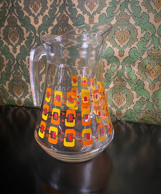 Litt "avskrap" mønster Vannkanne saftmugge glassmugge med hank 1970-tallet Flott stor glassmugge med et fargerikt rød/gult/ orange mønster. Mål H20,5xØ13 cm. Det er et lite området hvor det er avskrap i mønsteret ellers er muggen uten skader, skjemmende bruksmerker eller falming. Fremstår i flott vintage stand. NOK145,00 inkl. mva. På lager: 1 stk. Kjøp Ønskeliste Vipps hurtigkasseKjøp nå med Vipps hurtigkasse Del dette Produktinfo Varen kan sendes eller hentes etter avtale på butikklageret i Tysvær NB! man får spørsmål om hente/sending først etter at man har registrert adressen. Fast fraktpris 73 kr for kjøp <1000 kr og gratis frakt ved kjøp ≥1000 kr (Begge alternativene gjelder for forsendelser med vekt 0-10 kg). Har du bestilt, men hører ikke noe i fra meg? Sjekk mappen for uønsket e-post.
