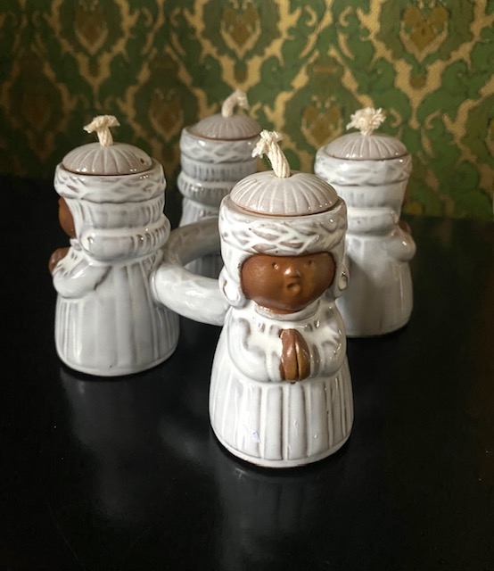 Juledekor dobbel julestake lysestake i glasert terrakotta keramikk ib laursen Danmark Denmark 1970/80-tallet