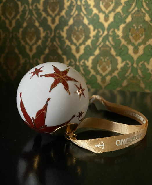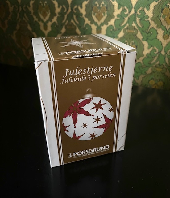 Juletrepynt ornament julekule i hvit porselen julestjerne gulldekor i original eske PP Porsgrund Norway Norge 2011