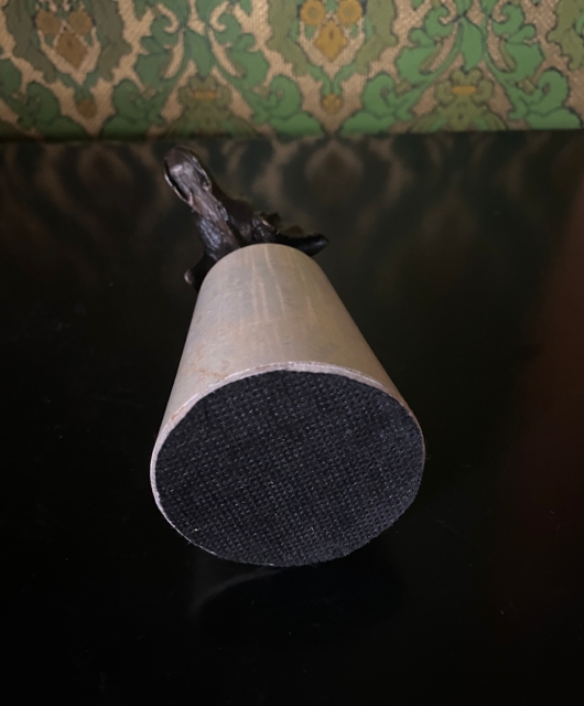 Stor Art deco/ funkis tak/bordlampe, merket KN 13. Noe overraskende design/ uttrykk på en lampe som antagelig ikke bare er vintage men antikk. Lampesokkel i kobber og kuppel i opal sandblåst glass. H24x Ø30 cm. Produsent ukjent, mulig Norske Havanna.