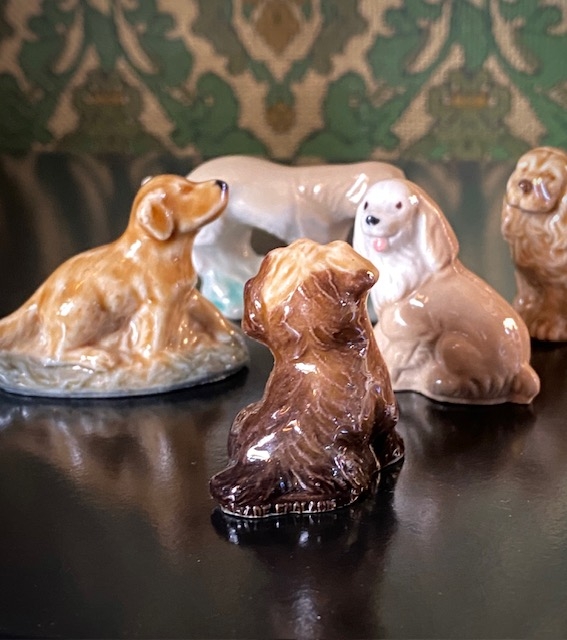 Miniatyr små samlefigurer hunder i glasert steingods settekasse England 1980-tallet 5 stk figurer selges samlet. Ingen skader eller skjemmende bruksmerker, fremstår i flott vintage stand. Mål Cocker spaniel hund ca H3,5x L3,5x B2,0 cm. NOK150,00 inkl. mva. På lager: 1 stk. Kjøp Ønskeliste Vipps hurtigkasseKjøp nå med Vipps hurtigkasse Del dette Produktinfo Varen kan sendes eller hentes etter avtale på butikklageret i Tysvær NB! man får spørsmål om hente/sending først etter at man har registrert adressen. Fast fraktpris 73 kr for kjøp < 1000 kr og gratis frakt ved kjøp ≥ 1000 kr (Begge alternativene gjelder for forsendelser med vekt 0-10 kg). Har du bestilt, men hører ikke noe i fra meg? Sjekk mappen for spam mail.